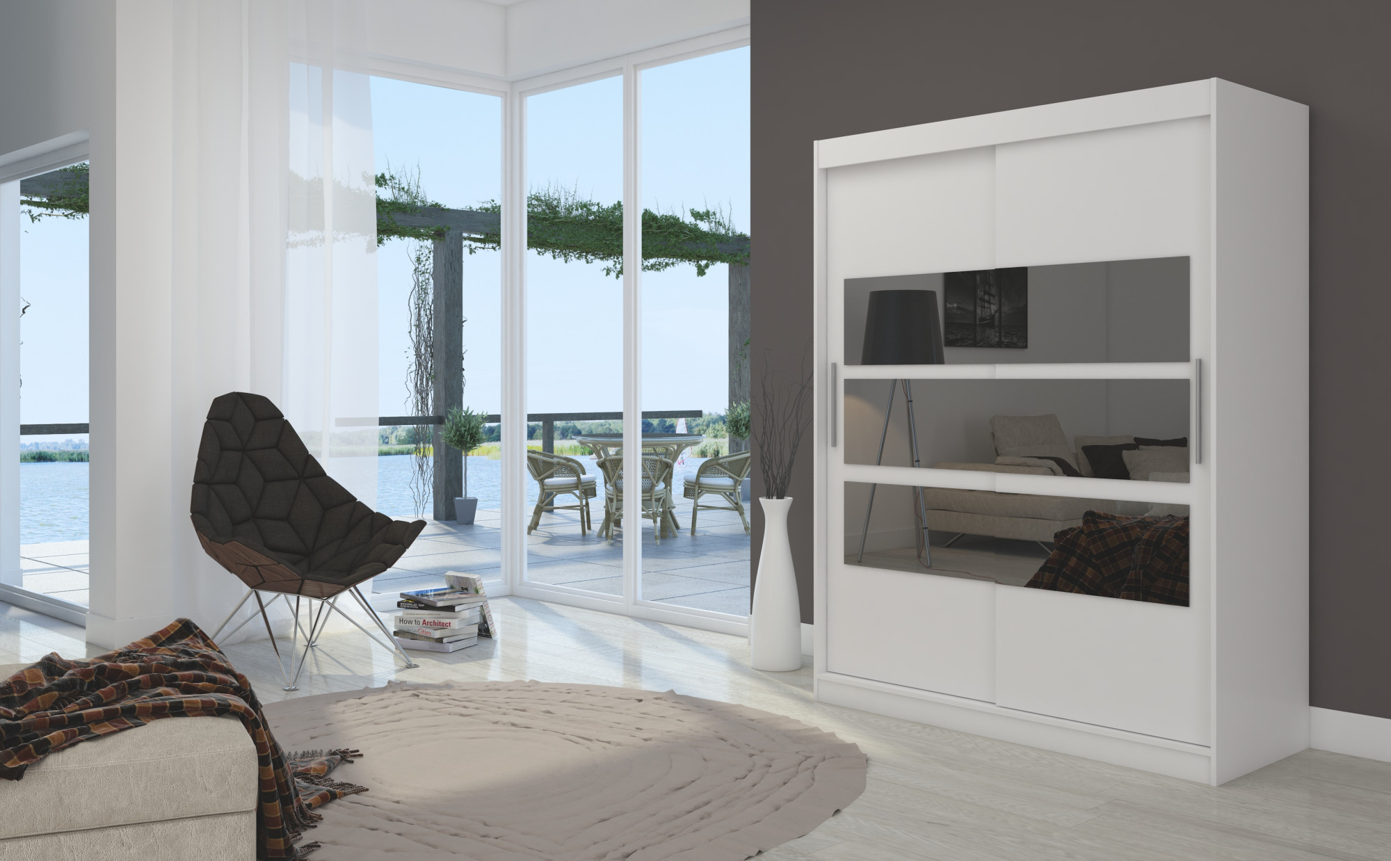 Posuvná skříň se zrcadlem FLORENTO 150 Bílá+Bílá