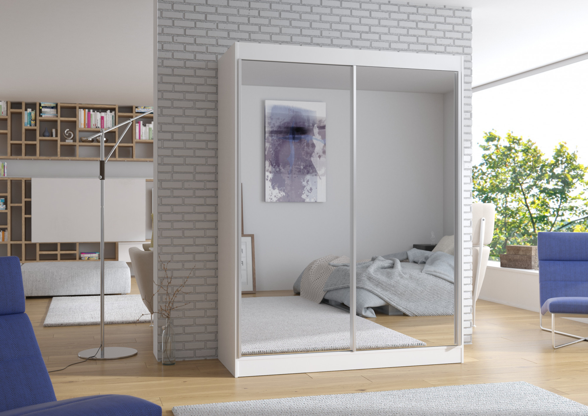 Posuvná skříň se zrcadlem FLOREST 150 Bílá+Bílá