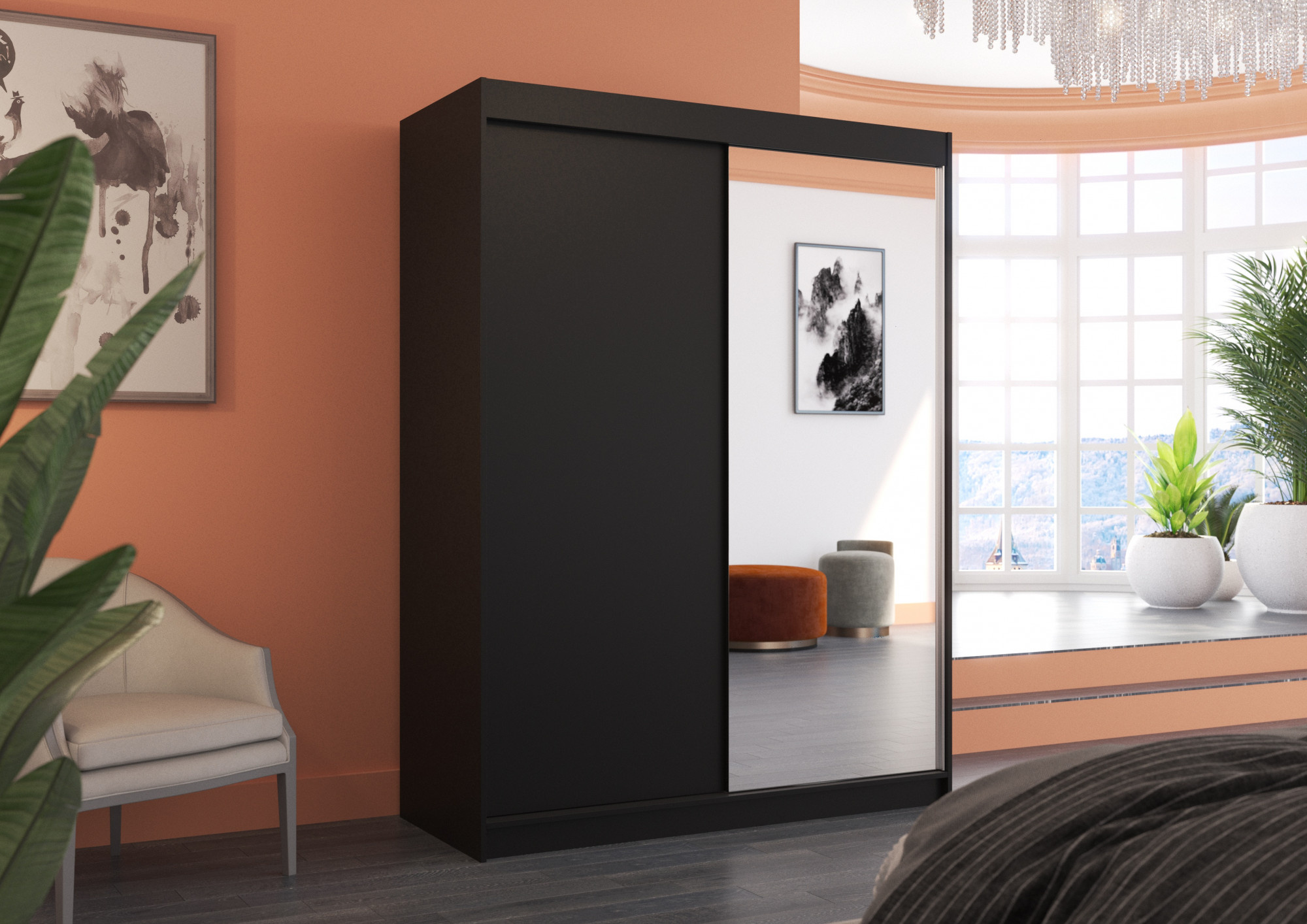 Posuvná skříň se zrcadlem JORDI 150 Černá+Černá