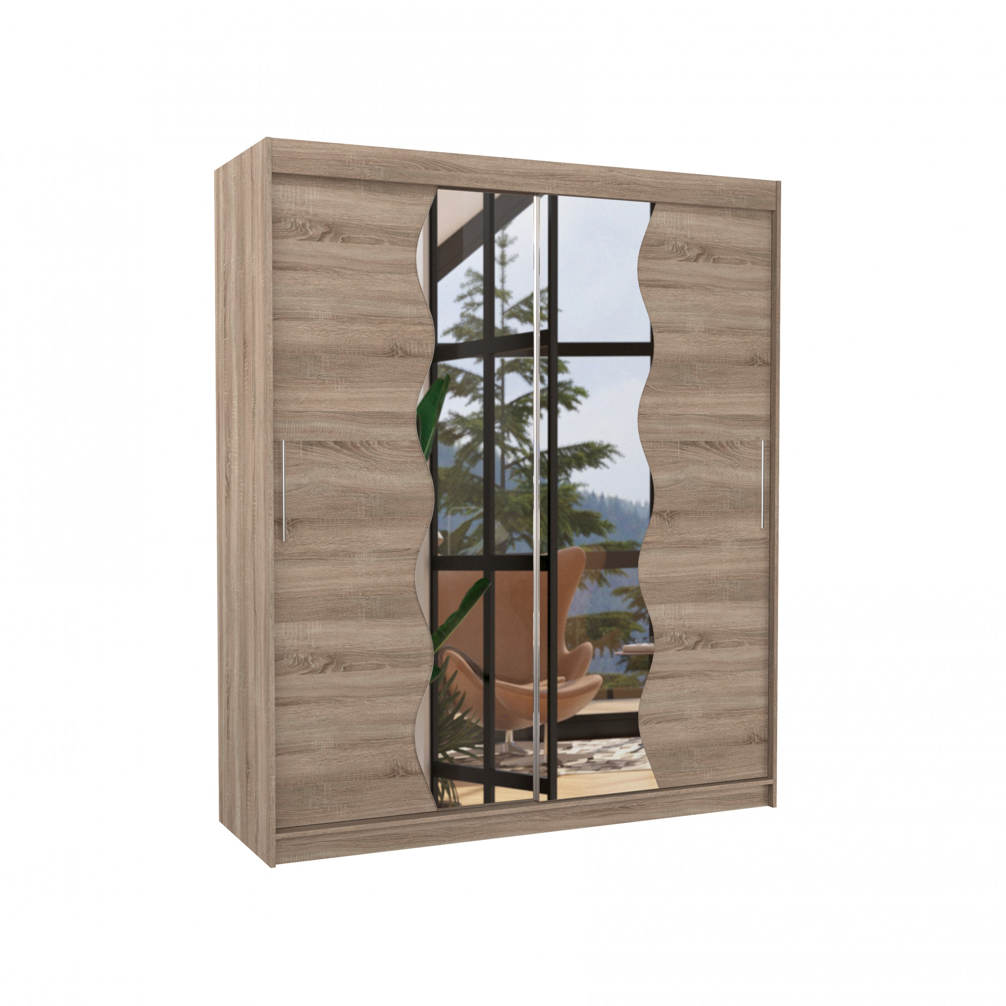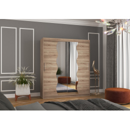 Šatní skříň s posuvnými dveřmi a zrcadlem KANSAS je ideálním způsobem, jak uspořádat prostor. Nábytek je vybaven prostornými policemi a tyčí, na kterou můžete pověsit šaty, obleky, svrchní oděvy nebo košile. Na čelní stranu byla připevněna zrcadla, která opticky zvětšují prostor. Díky tomu, že skříň je posuvná, nemusíte vyčleňovat další místo na otevření dveří, což z ní činí ideální řešení pro malý pokoj nebo úzkou předsíň.