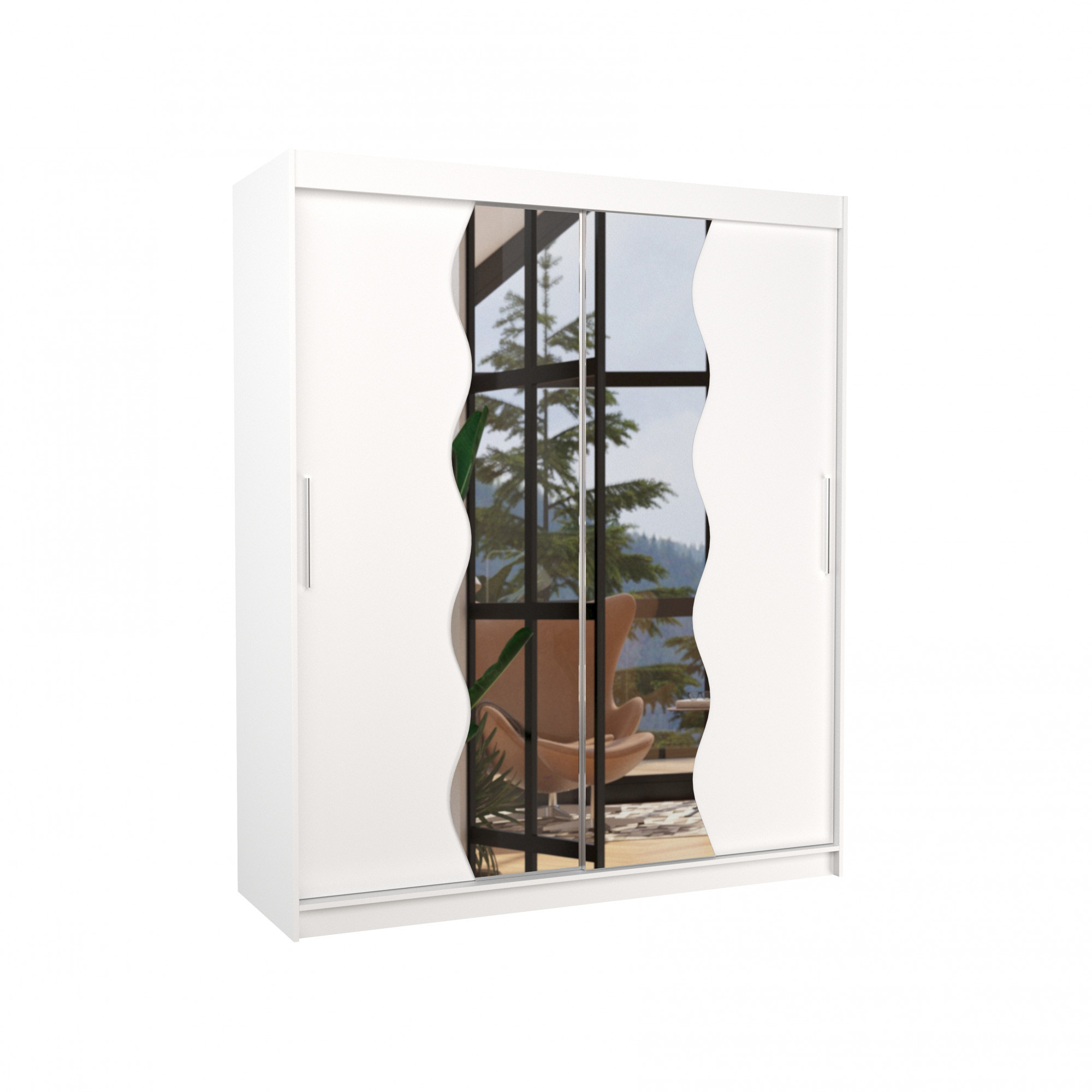 Šatní skříň s posuvnými dveřmi a zrcadlem KANSAS 180 Bílá+Bílá