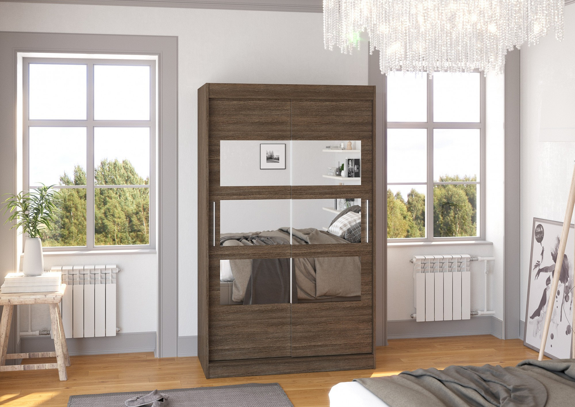 Šatní skříň s posuvnými dveřmi a zrcadlem KOLORADO 120 Choco+Choco
