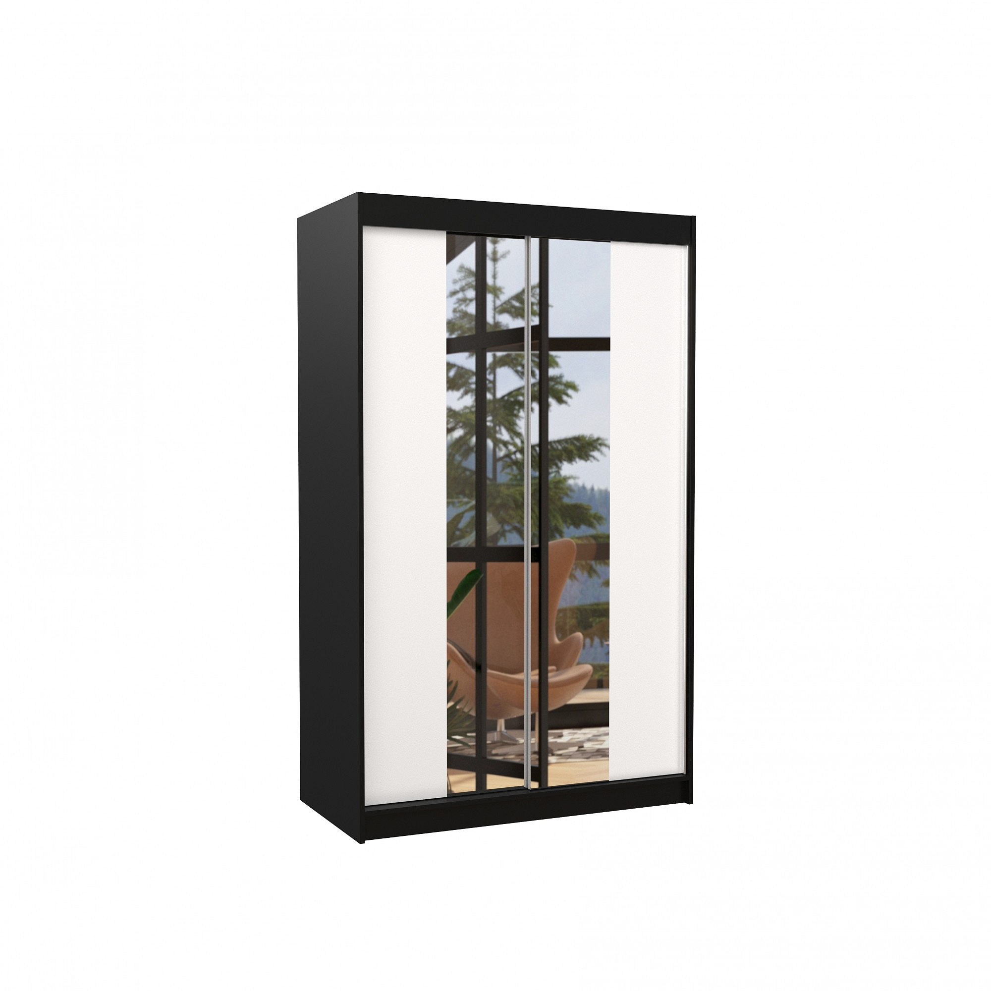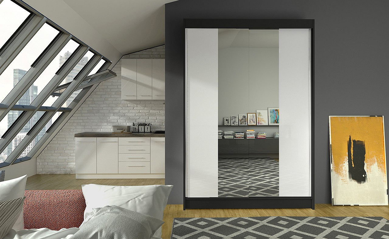 Posuvná skříň se zrcadlem MARVIN 120 Černá+Bílá