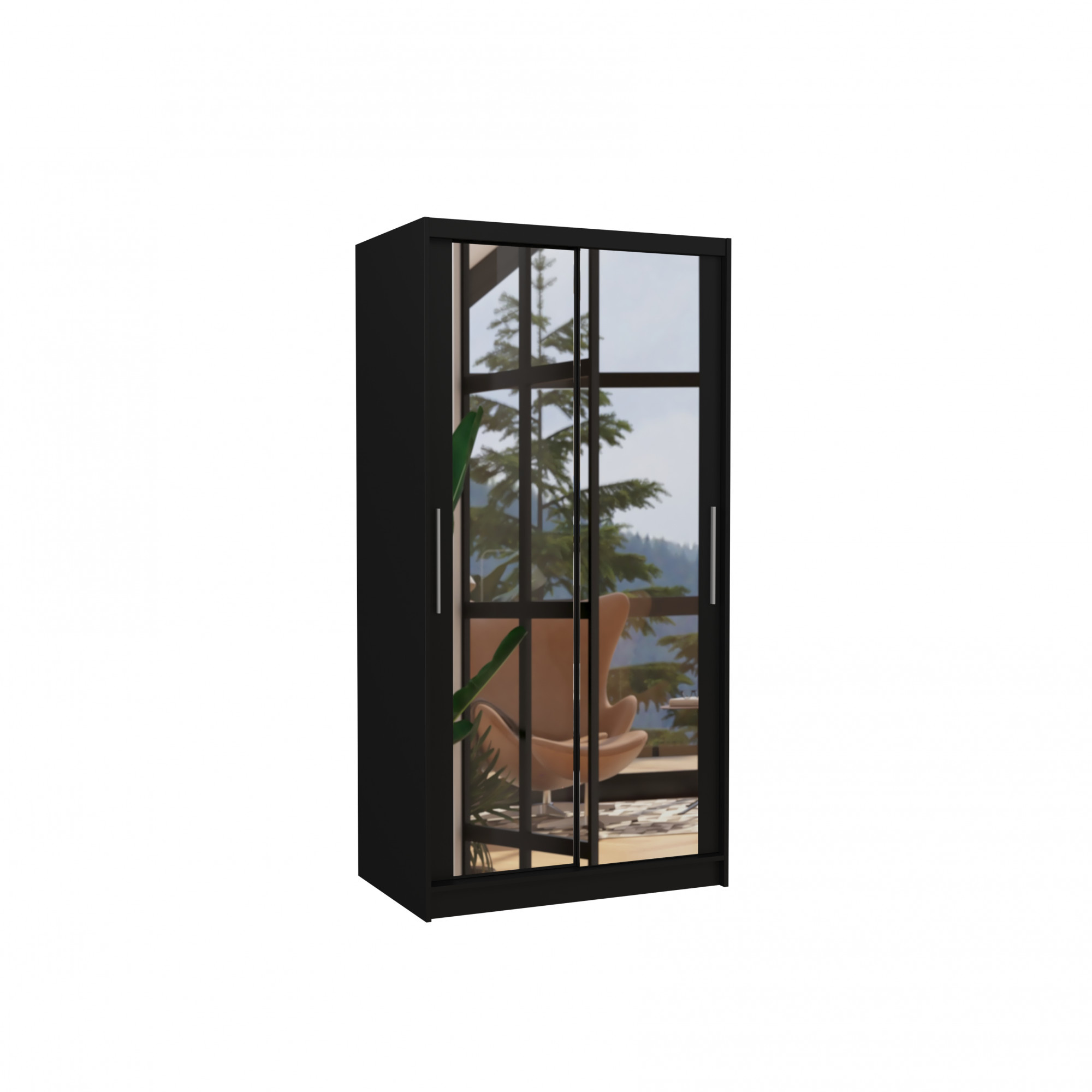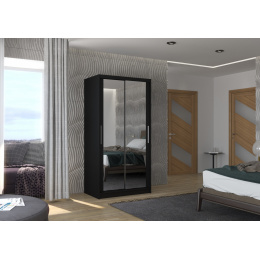 Šatní skříň s posuvnými dveřmi a zrcadlem NEVIO 100 Černá+Černá