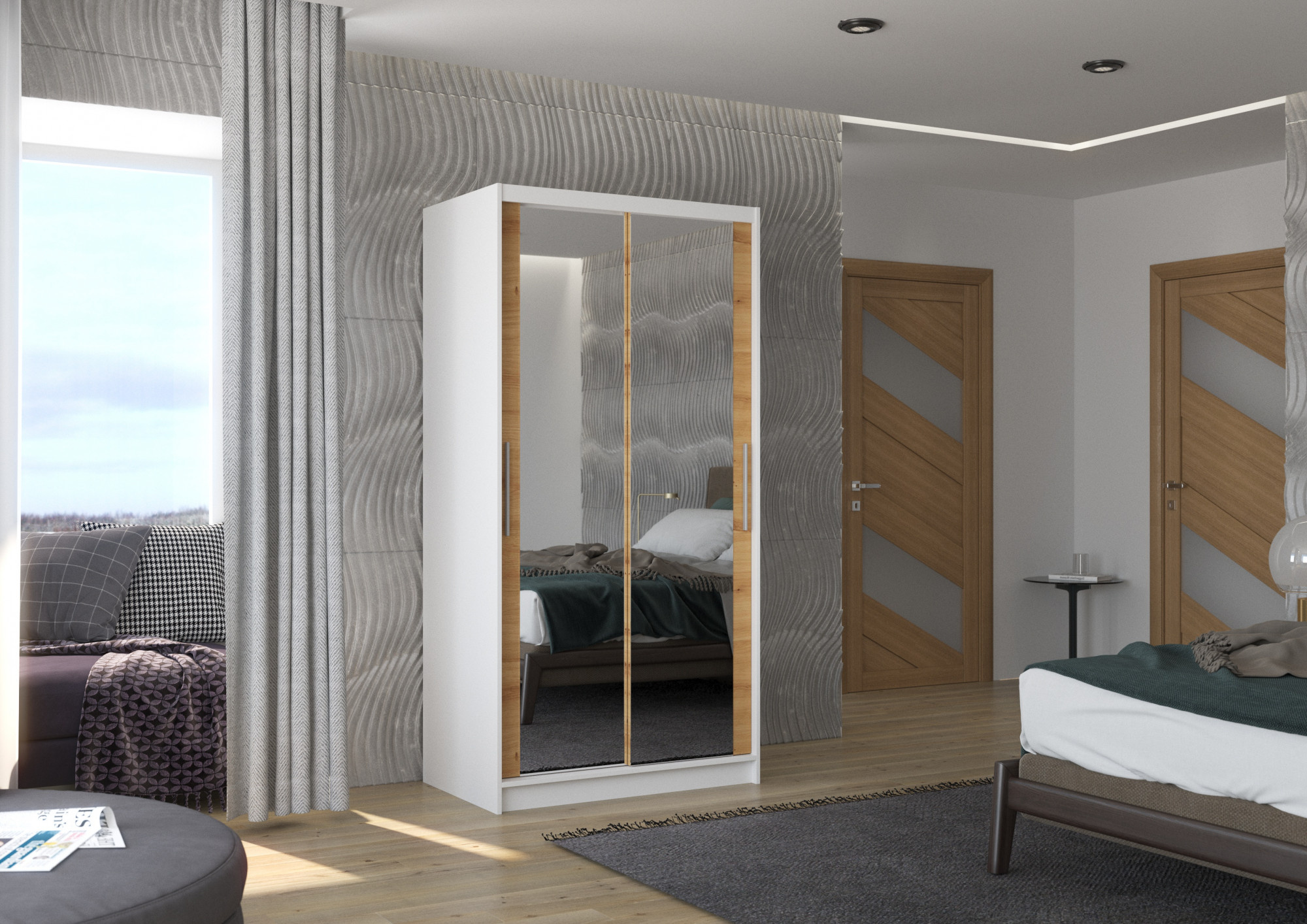 Posuvná skříň se zrcadlem NEVIO 100 Bílá+Artisan