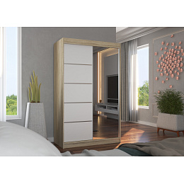 Šatní skříň s posuvnými dveřmi a zrcadlem NICEA 120 Sonoma+Bílá