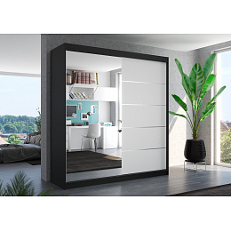 Posuvná skříň se zrcadlem OLIVER 200 Černá+Bílá