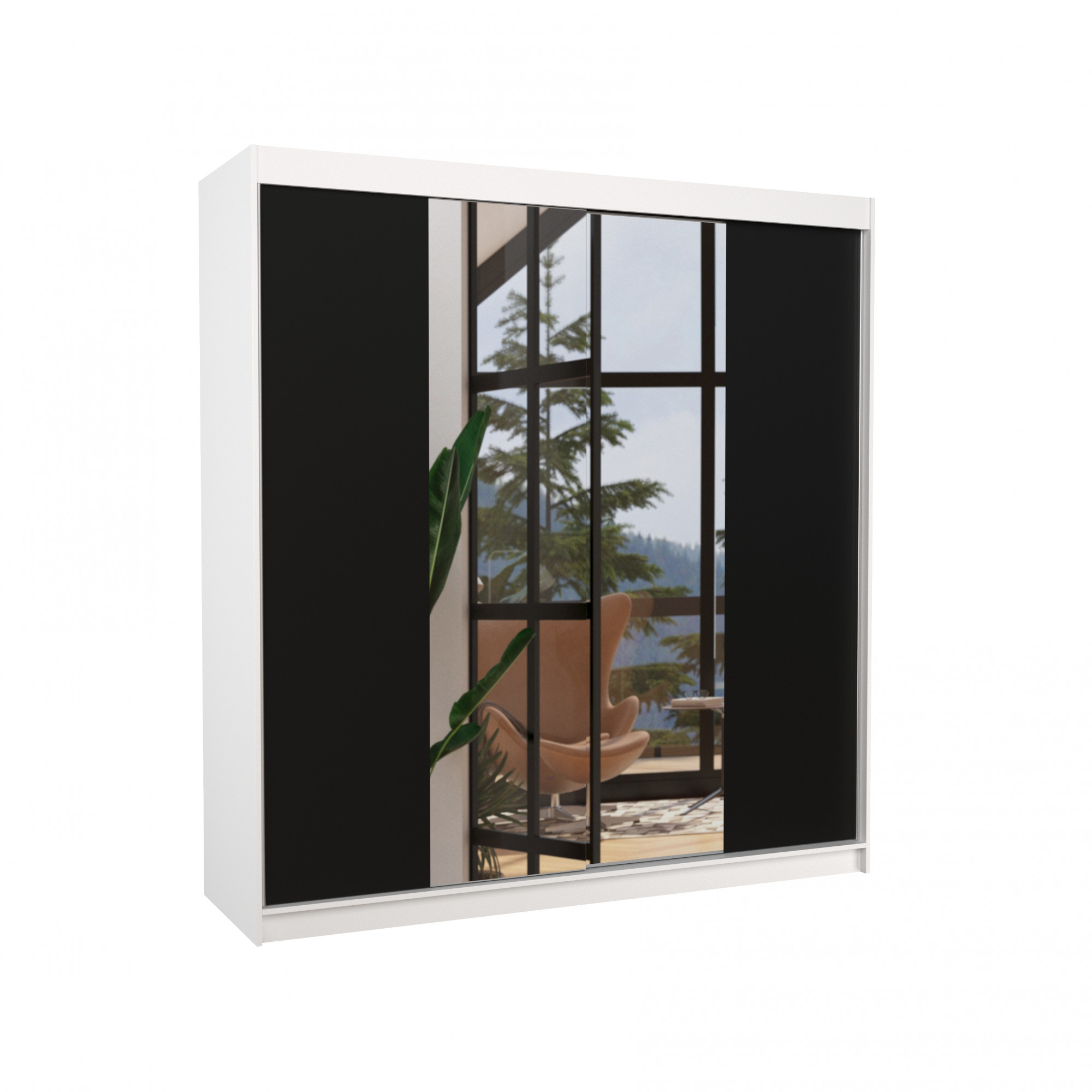 Posuvná skříň se zrcadlem PERQS 200 Bílá+Černá