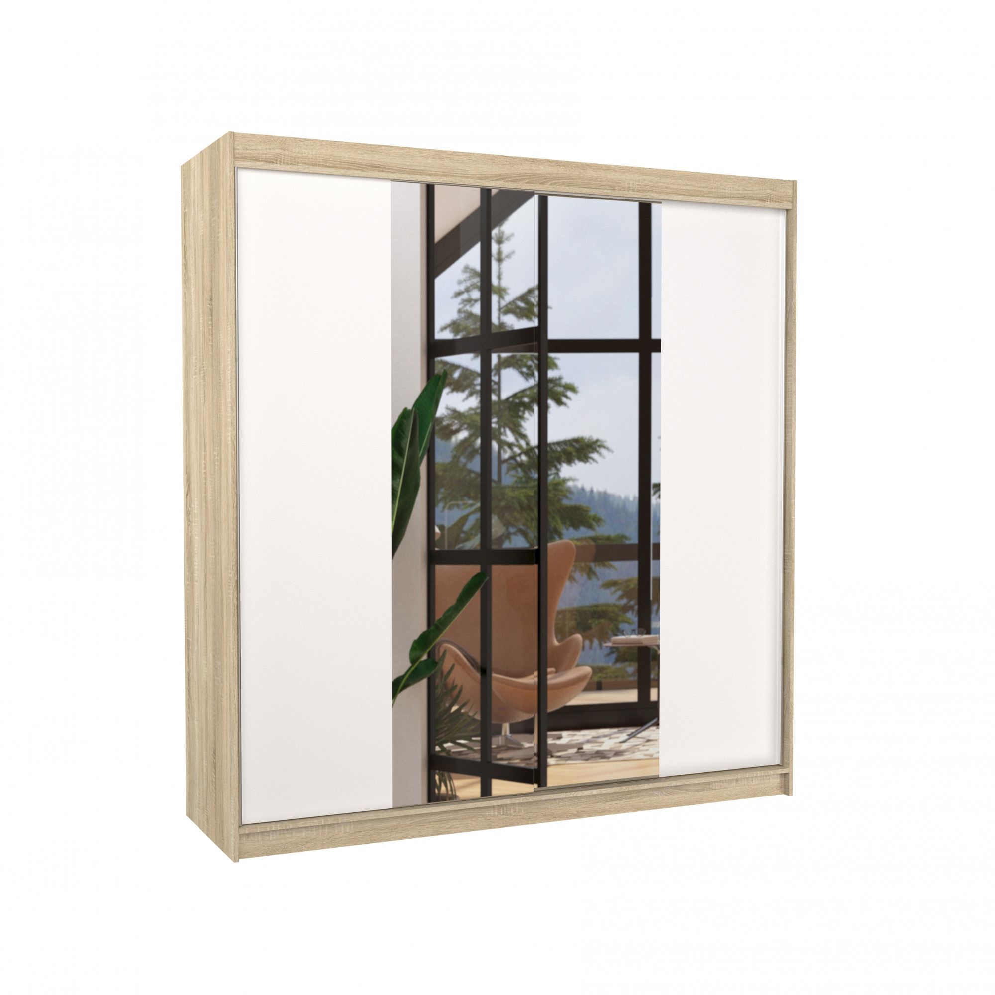 Posuvná skříň se zrcadlem PERQS 200 Sonoma+White