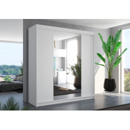 Šatní skříň s posuvnými dveřmi a zrcadlem PERQS 200 Bílá+Bílá