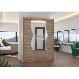 Šatní skříň s posuvnými dveřmi a zrcadlem RENZO je ideálním způsobem, jak uspořádat prostor. Nábytek je vybaven prostornými policemi a tyčí, na kterou můžete pověsit šaty, obleky, svrchní oděvy nebo košile. Na čelní straně bylo připevněno zrcadlo, které opticky zvětšuje prostor. Díky tomu, že skříň je posuvná, nemusíte vyčleňovat další místo na otevření dveří, což z ní činí ideální řešení pro malý pokoj nebo úzkou předsíň.