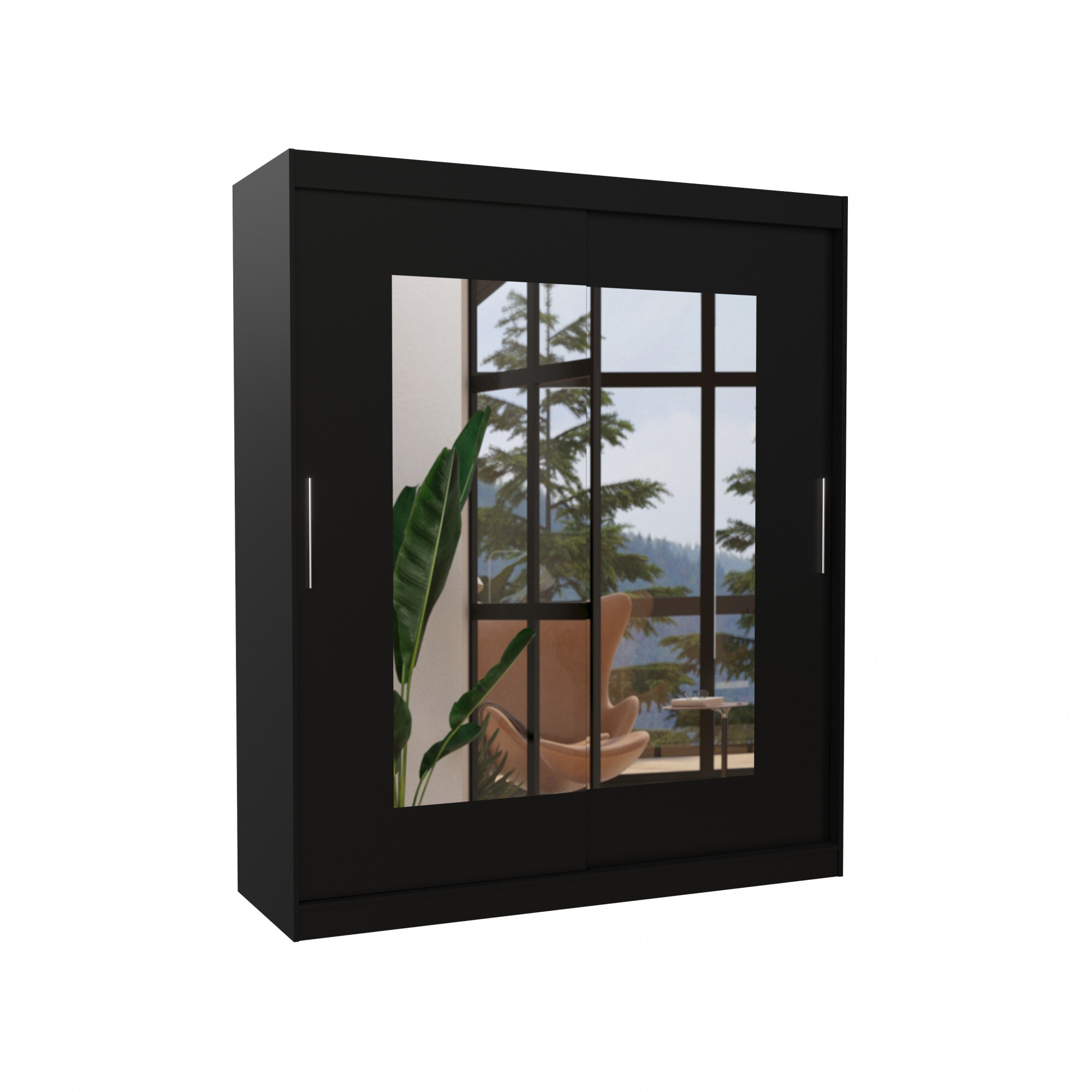 Posuvná skříň se zrcadlem ROSETTE 180 Černá+Černá
