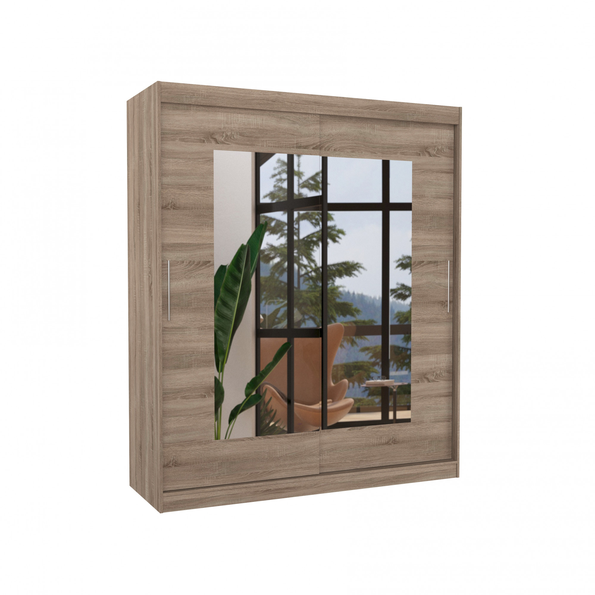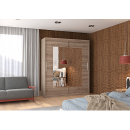 Šatní skříň s posuvnými dveřmi a zrcadlem ROSETTE je ideálním způsobem, jak uspořádat prostor. Nábytek je vybaven prostornými policemi a tyčí, na kterou můžete pověsit šaty, obleky, svrchní oděvy nebo košile. Na čelní stranu byla připevněna zrcadla, která opticky zvětšují prostor. Díky tomu, že skříň je posuvná, nemusíte vyčleňovat další místo na otevření dveří, což z ní činí ideální řešení pro malý pokoj nebo úzkou předsíň.