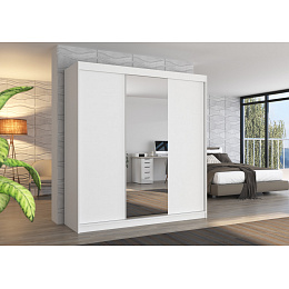 Šatní skříň s posuvnými dveřmi a zrcadlem SANTIAGO 200 Bílá+Bílá