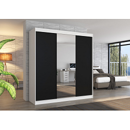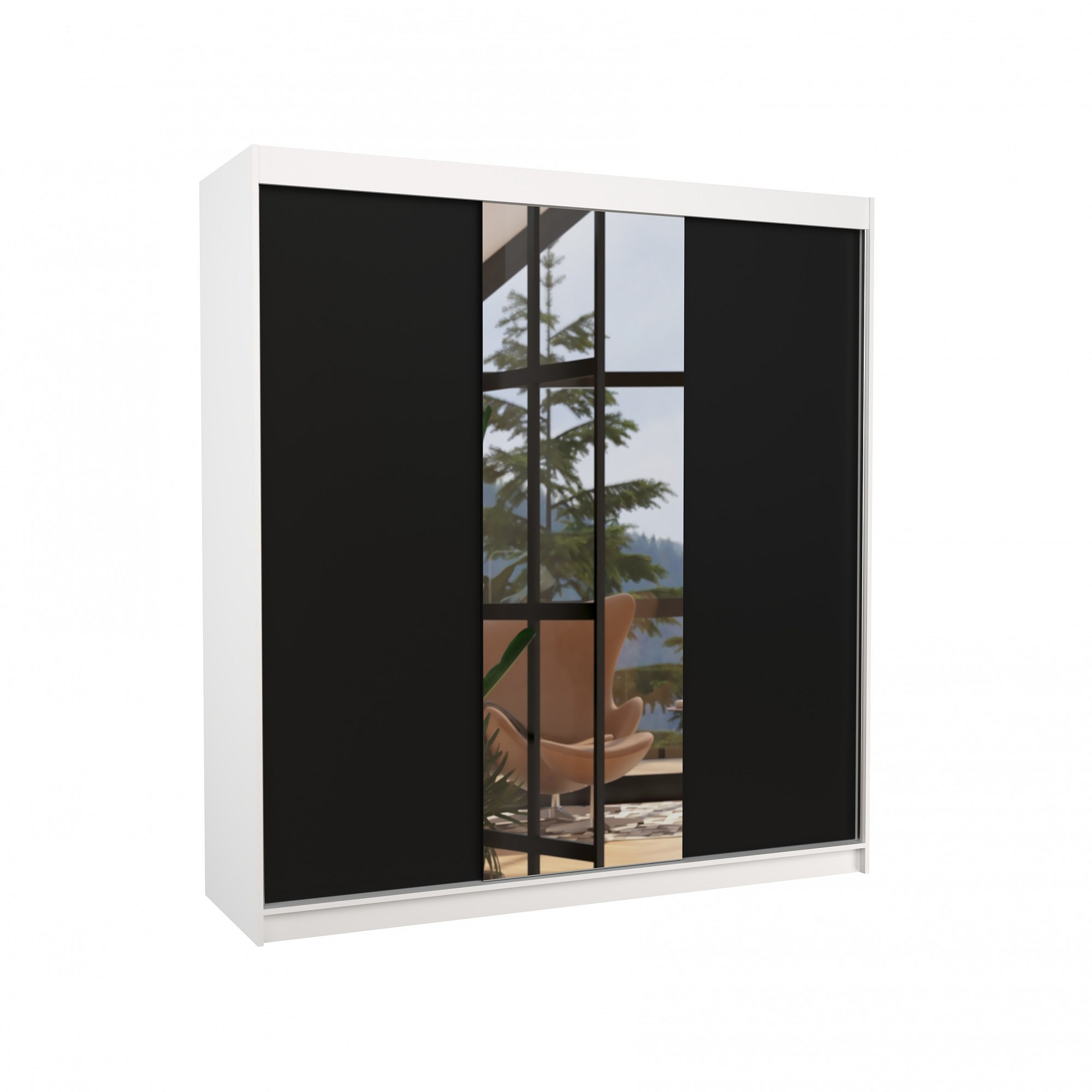 Posuvná skříň se zrcadlem SANTIAGO 200 Bílá+Černá