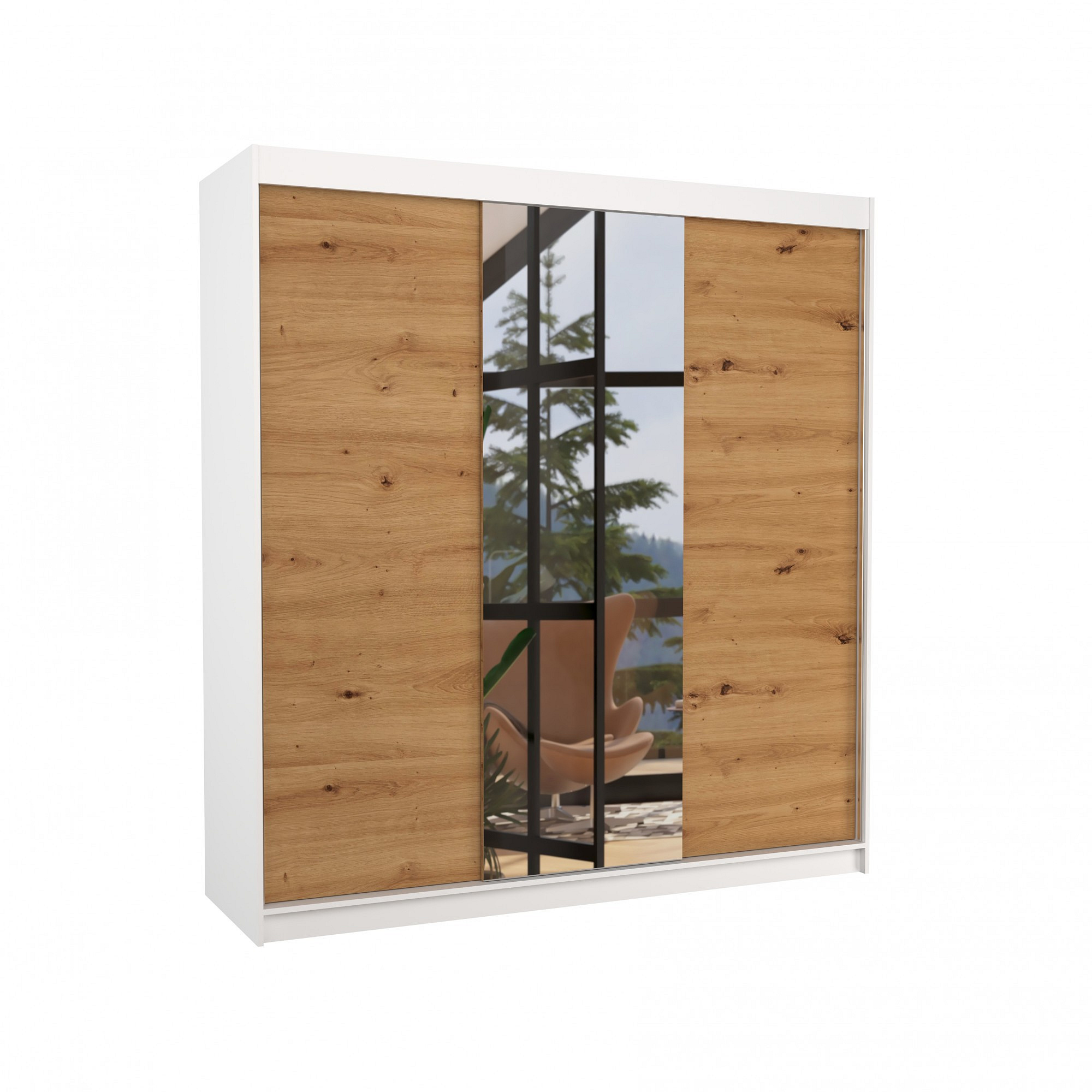 Posuvná skříň se zrcadlem SANTIAGO 200 Bílá+Artisan
