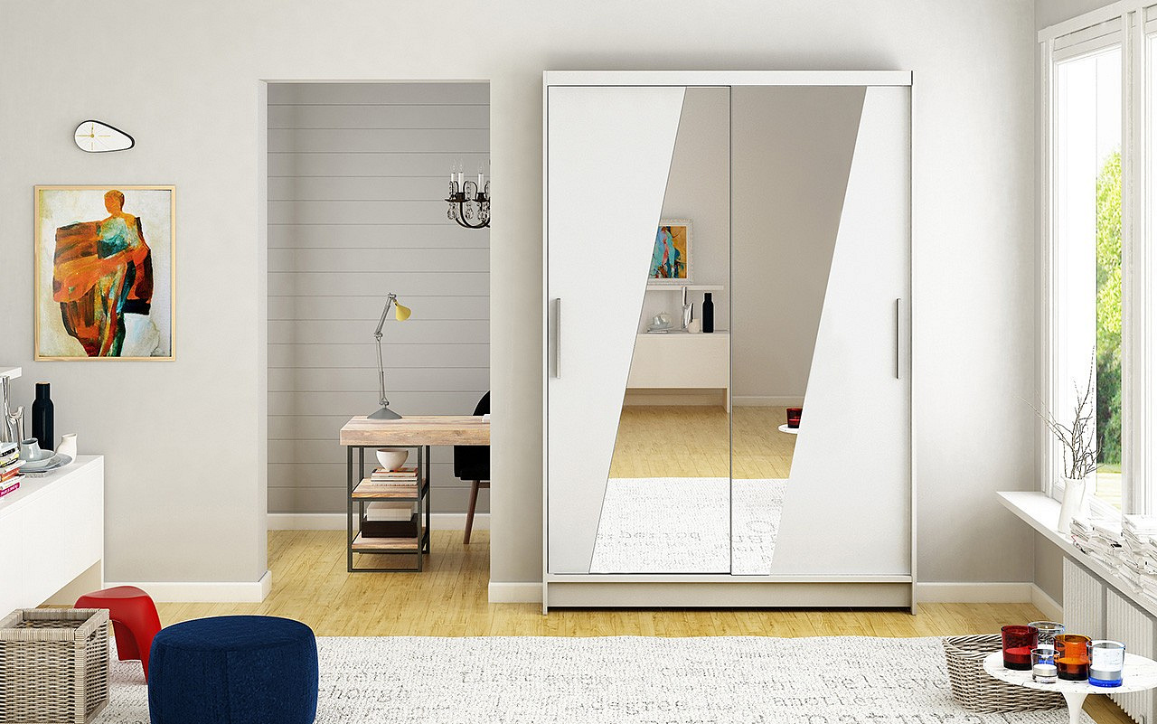 Šatní skříň s posuvnými dveřmi a zrcadlem TEXAS 120 Bílá+Bílá