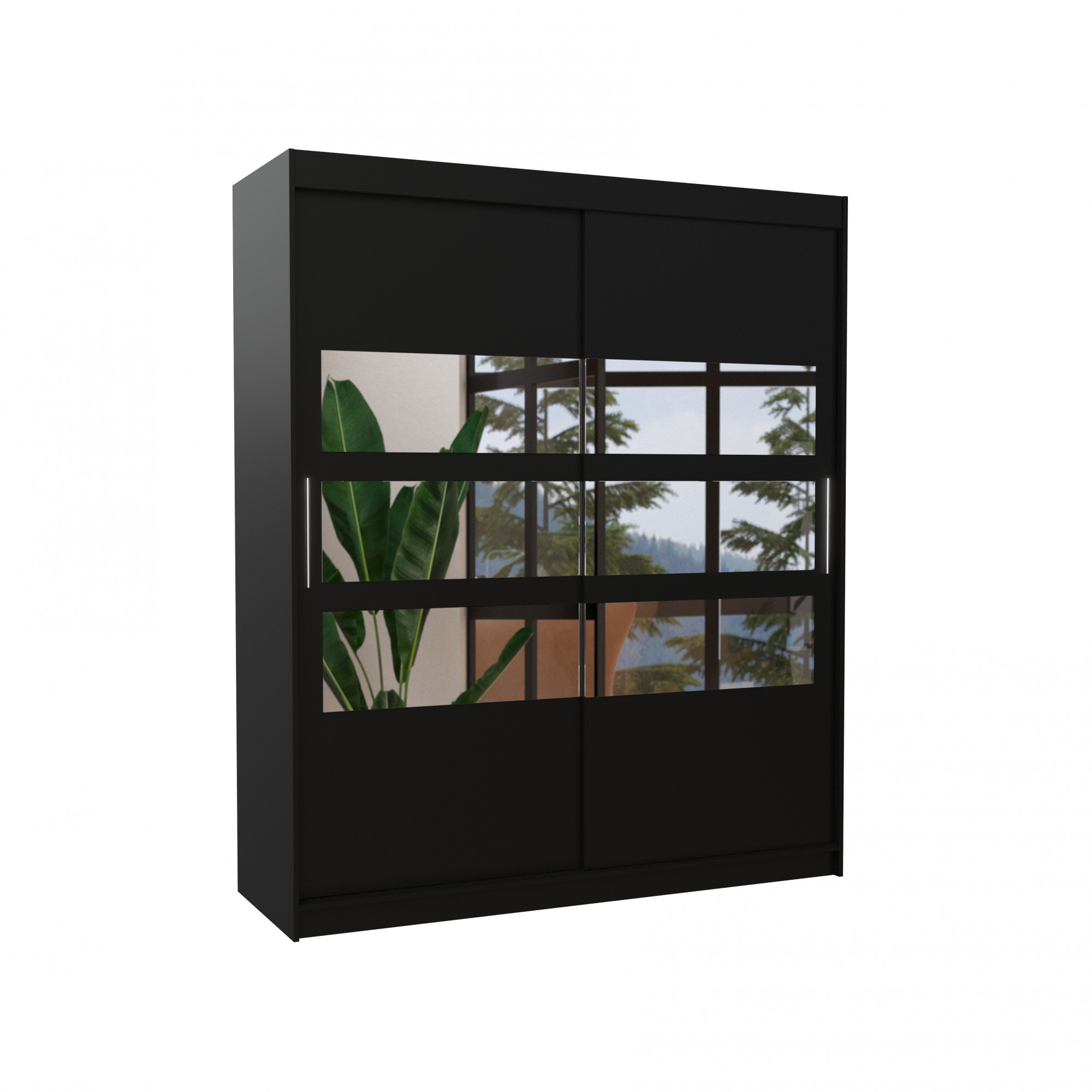 Posuvná skříň se zrcadlem TOLEDO 180 Černá+Černá
