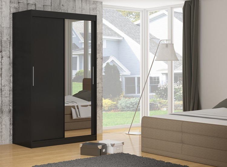 Posuvná skříň se zrcadlem TOM 180 Černá+Černá