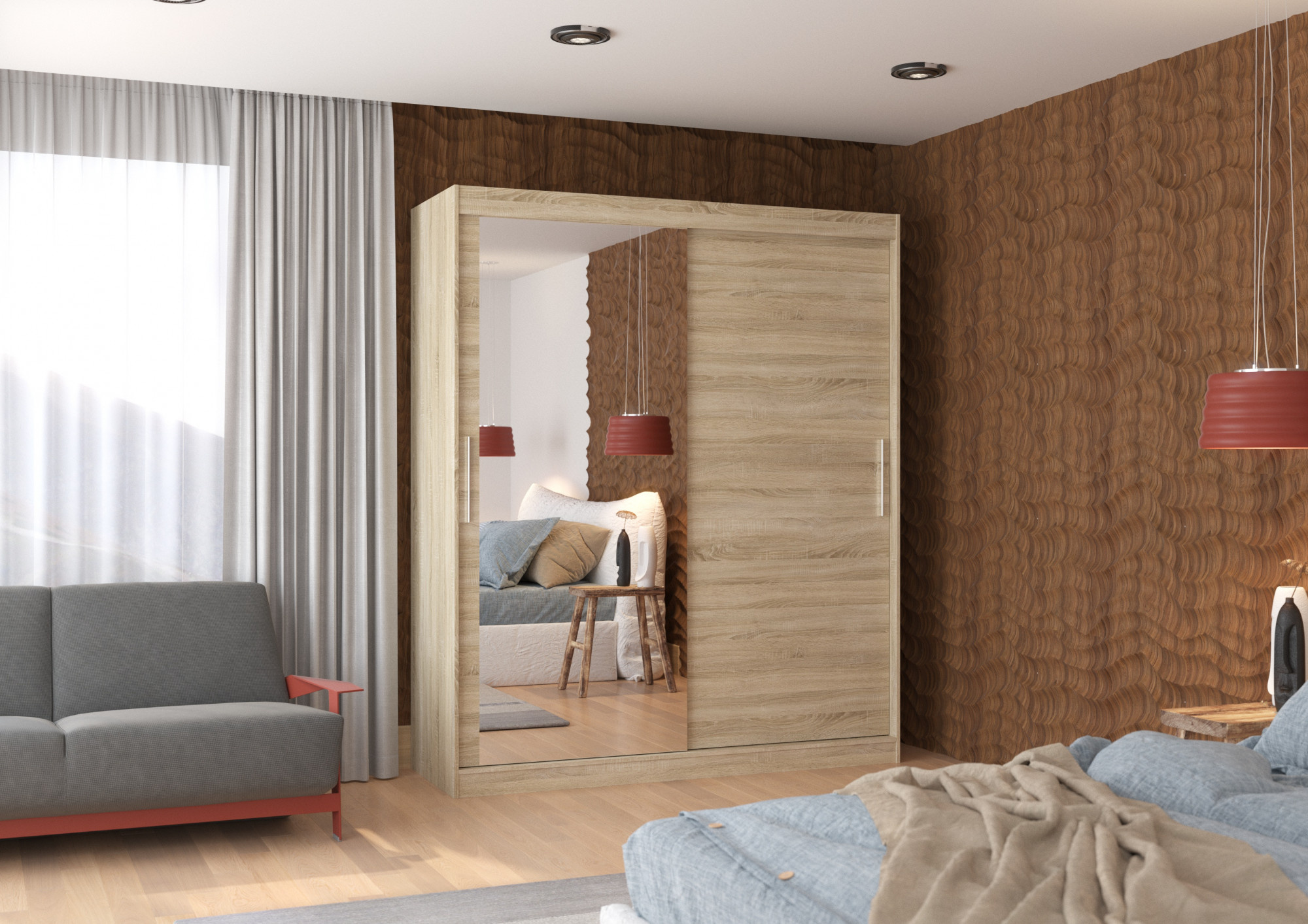Posuvná skříň se zrcadlem TOM 180 Sonoma+Sonoma