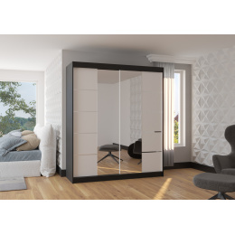 Posuvná skříň se zrcadlem TRAVES 180 Černá+Bílá