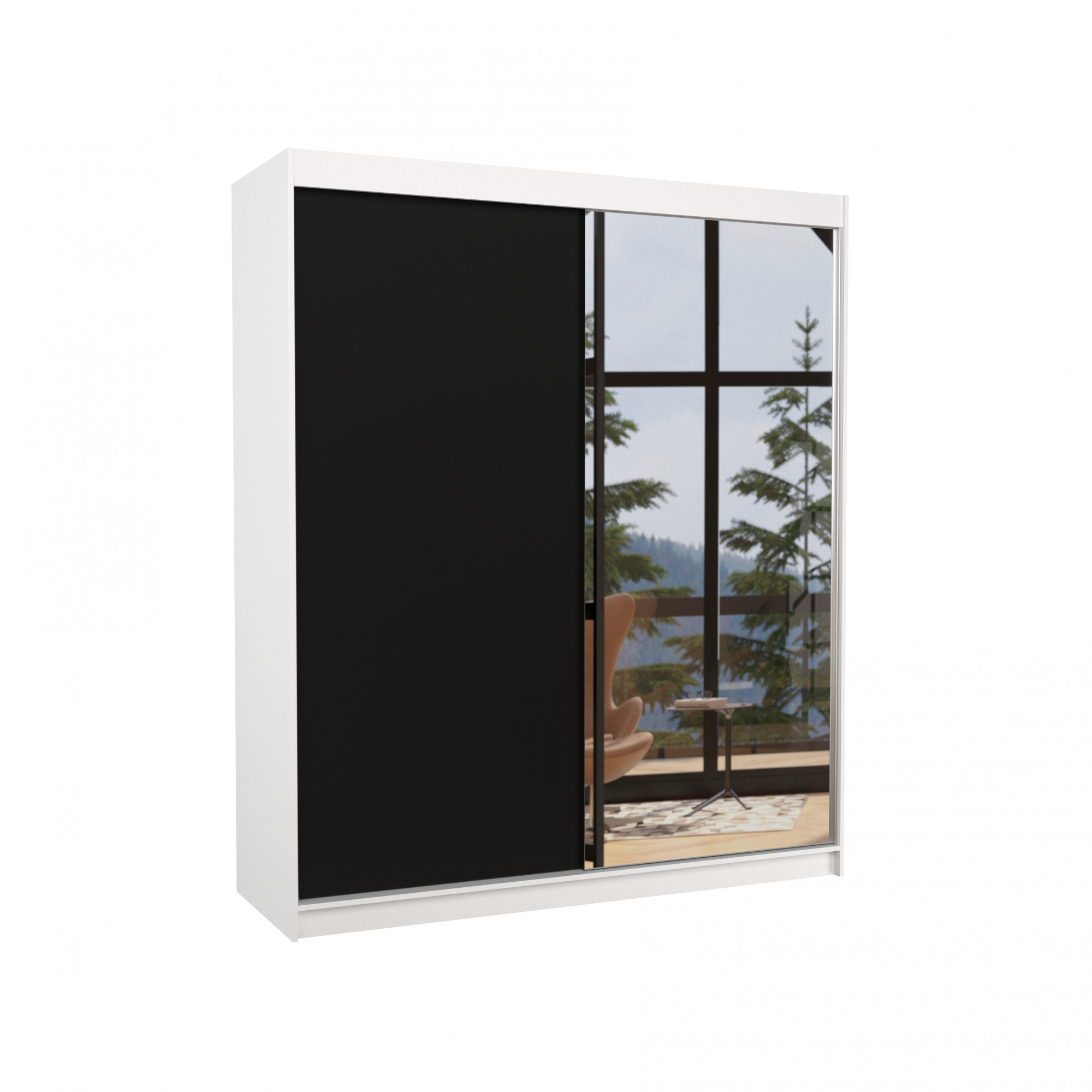 Šatní skříň s posuvnými dveřmi a zrcadlem VIKI 180 Bílá+Černá