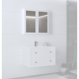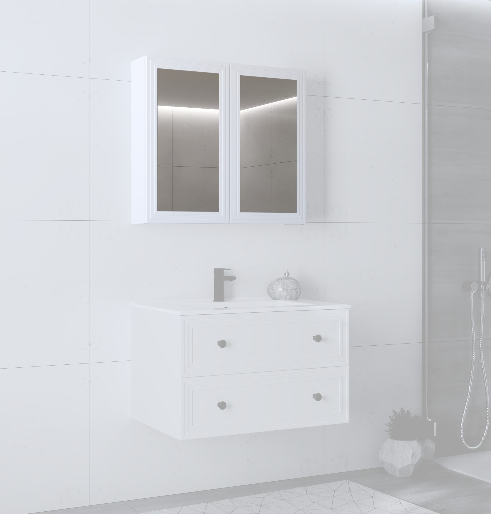 skříňka, rozměry: 80/15/70 cm, materiál: korpus - laminovaná nábytková deska, čelo - laminovaný MDF / zrcadlo, panty a pojezdy soft close, barva: matná bílá