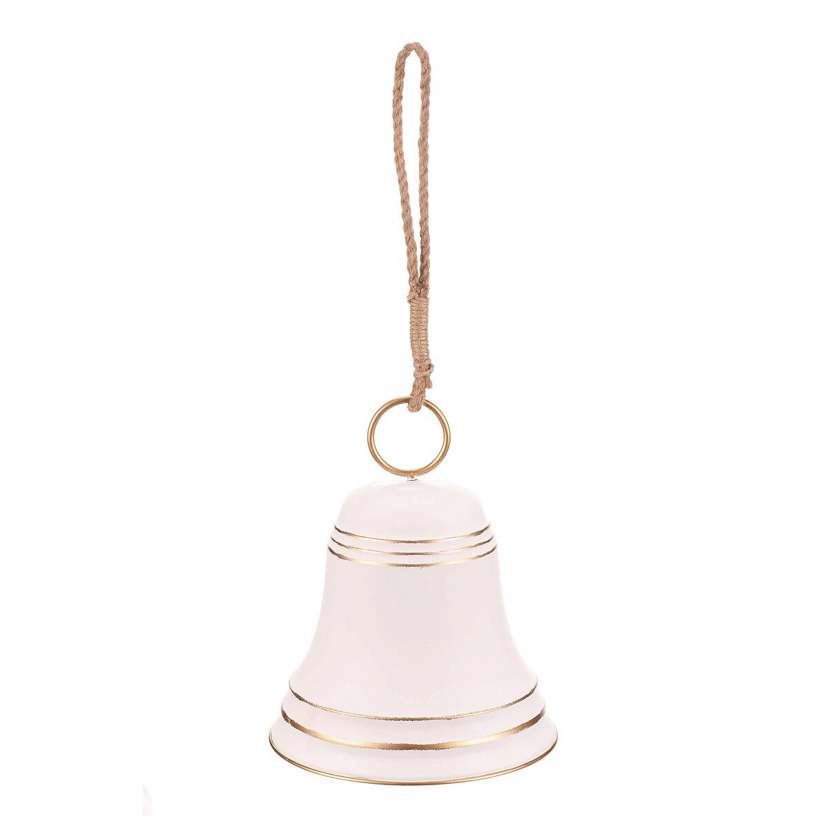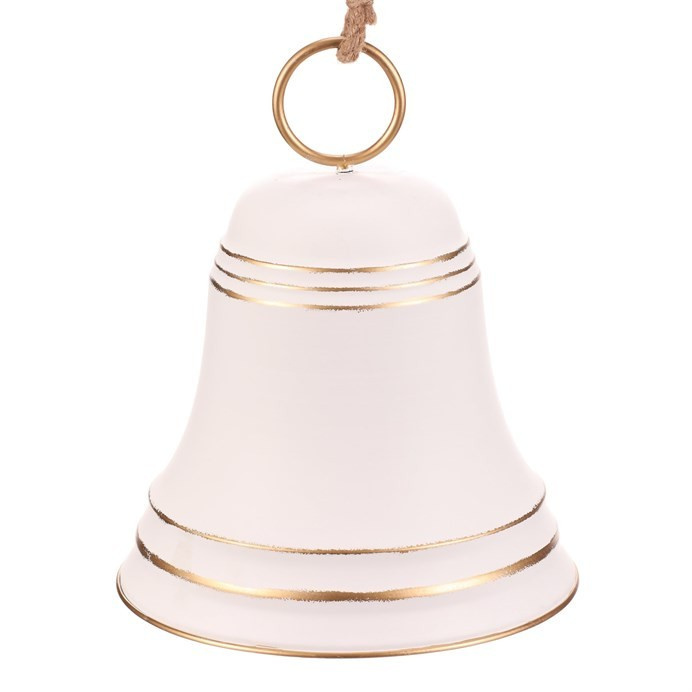 Velký kovový zvonek, v bílé barvě jako závěsná ozdoba, upoutá pozornost všude, kde se objeví. Díky svým obřím rozměrům není vhodný na klasický vánoční stromeček, neboť by jeho větvičky nápor tíhy nevydržely. Skvěle se ale hodí jako samostatná dekorace na stůl, podlahu, stěnu, nebo zavěšená ze stropu, případně na vzrostlý strom venku. Ideální pro vytvoření působivé sváteční atmosféry s dominantním dekoračním prvkem, který nikdo nepřehlédne.
