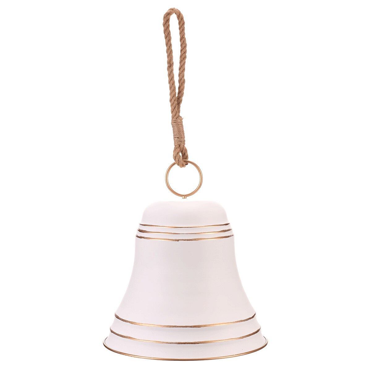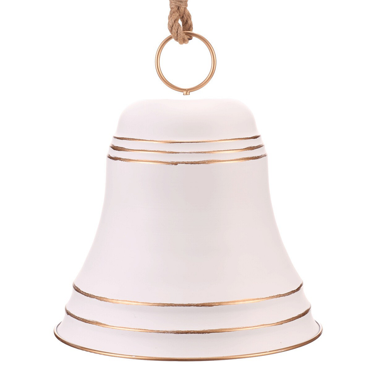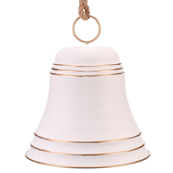Velký kovový zvonek, v bílé barvě jako závěsná ozdoba, upoutá pozornost všude, kde se objeví. Díky svým obřím rozměrům není vhodný na klasický vánoční stromeček, neboť by jeho větvičky nápor tíhy nevydržely. Skvěle se ale hodí jako samostatná dekorace na stůl, podlahu, stěnu, nebo zavěšená ze stropu, případně na vzrostlý strom venku. Ideální pro vytvoření působivé sváteční atmosféry s dominantním dekoračním prvkem, který nikdo nepřehlédne.