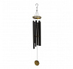 Zvonkohra s kovovými trubicemi v hnědém odstínu a dřevěnými doplňky vytváří příjemný zvukový efekt vhodný pro zavěšení na terasu, balkon nebo do interiéru. Její lehká konstrukce umožňuje snadné zavěšení pomocí kovového háčku, zatímco dřevěná základna a závěsné prvky dodávají přírodní vzhled. Zvonkohra je navržena tak, aby při pohybu větru vydávala harmonické tóny, které přispívají k relaxační atmosféře. Kombinace kovu a dřeva zajišťuje odolnost a dlouhou životnost produktu.